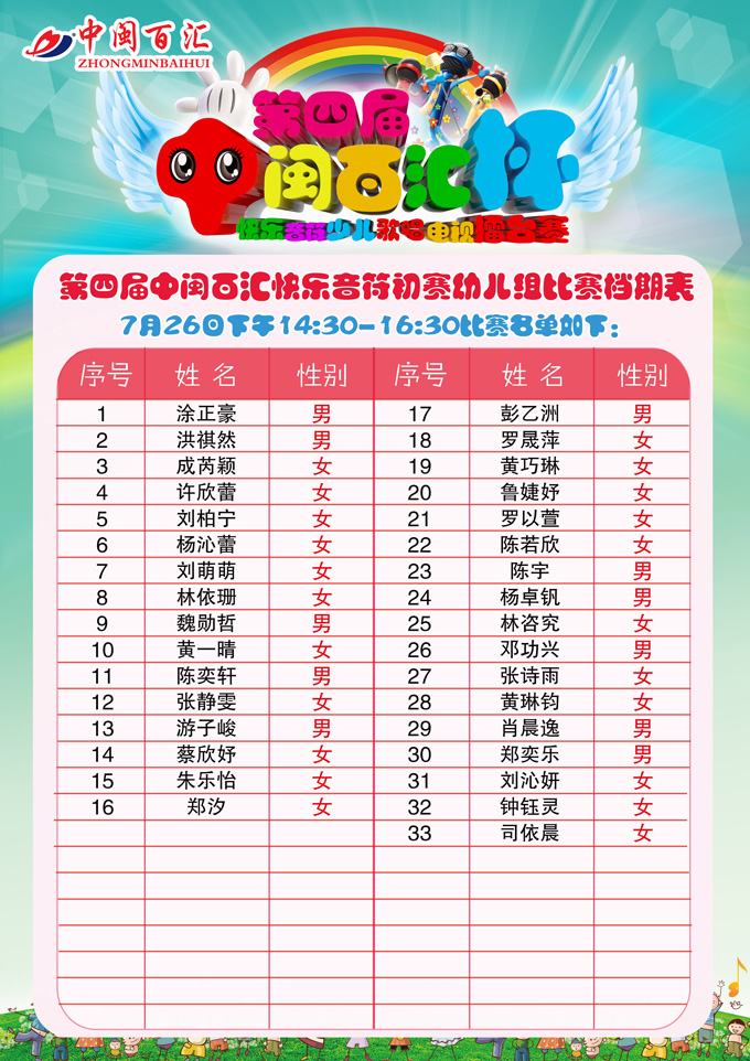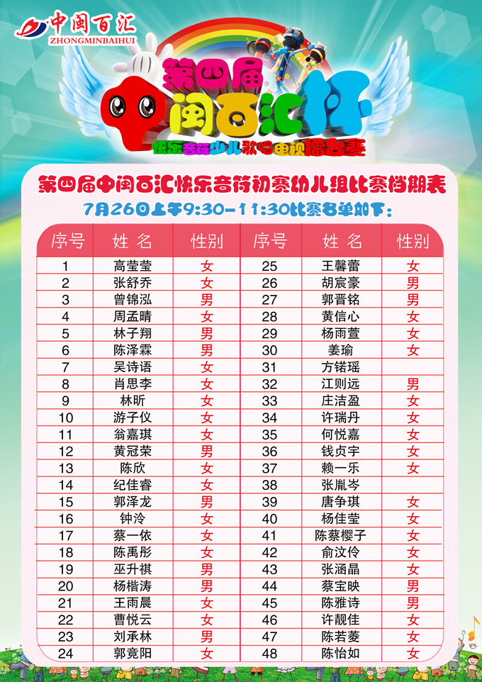 第四届快乐音符赛程表-幼儿组(7月26日)