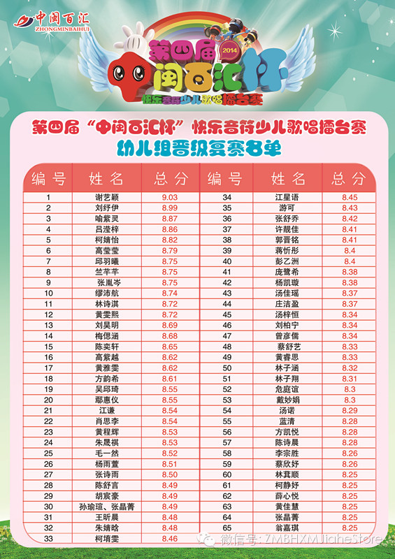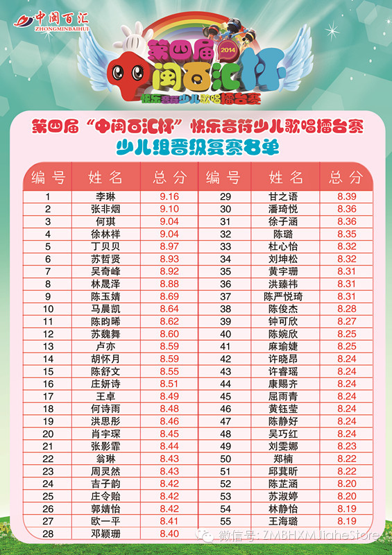 第四届中闽百汇杯快乐音符少儿歌唱擂台赛晋级复赛名单