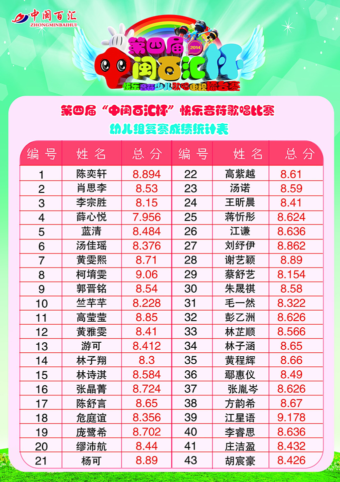 第四届快乐音符复赛成绩统计表—幼儿组