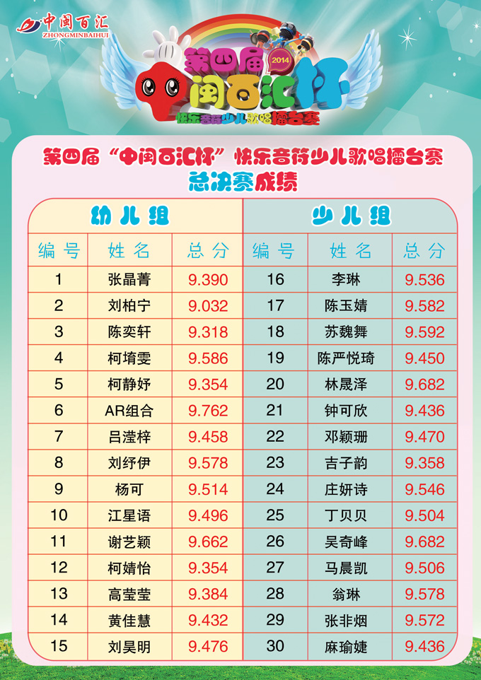 第四届快乐音符总决赛成绩统计表
