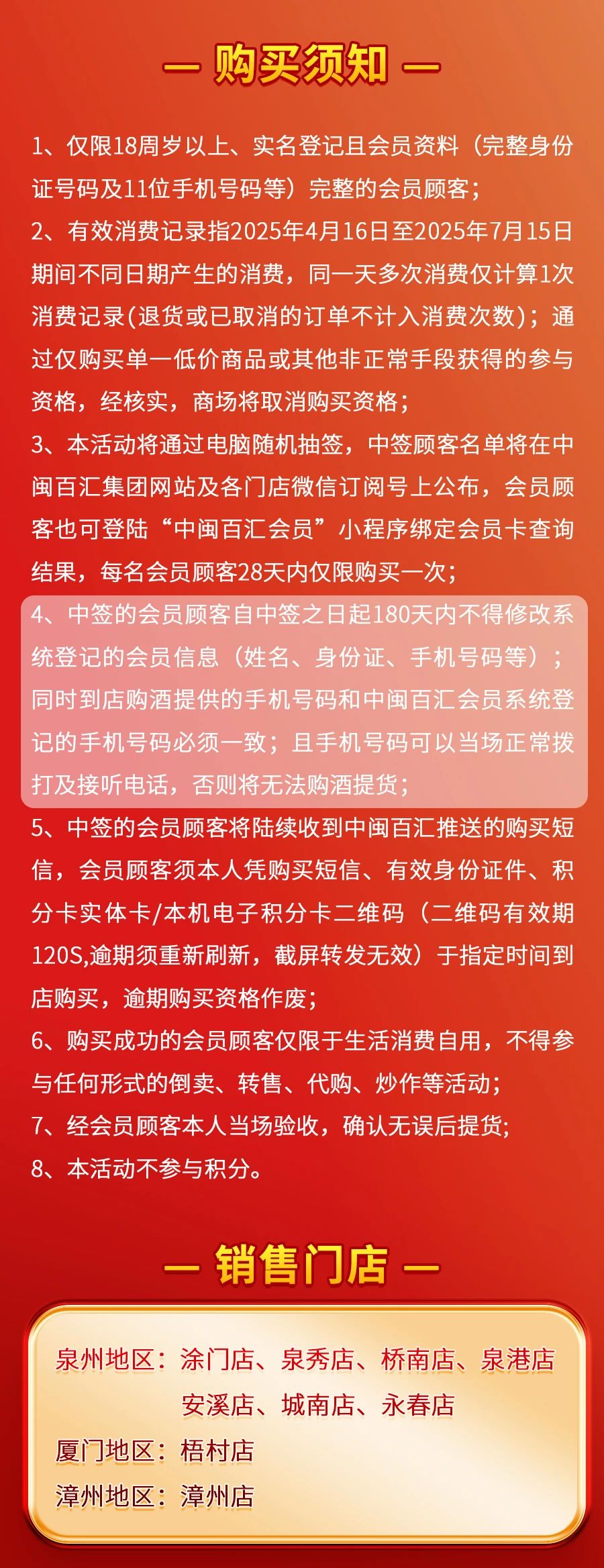 会员顾客须本人凭购买短信、有效证件、积分卡/电子积分卡二维码(本机)