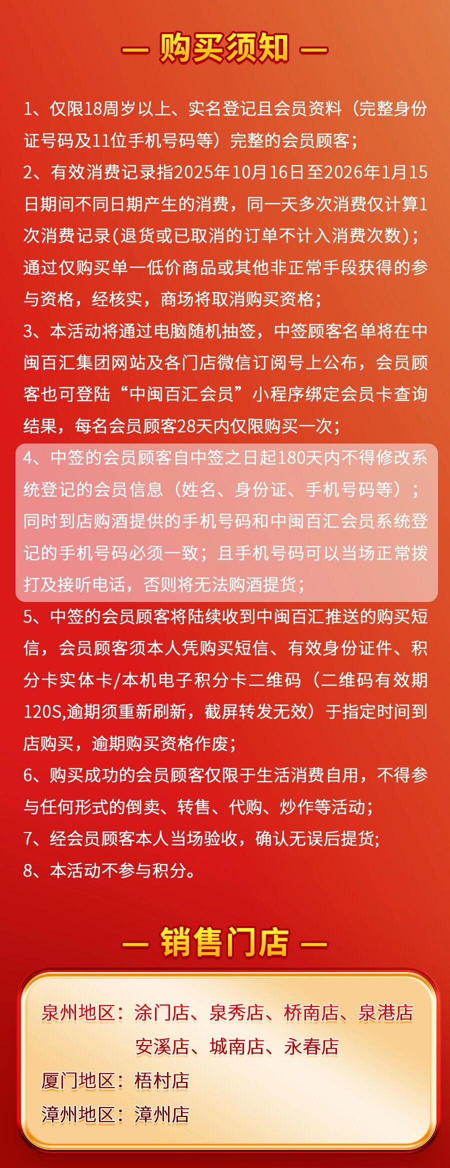 会员顾客须本人凭购买短信、有效证件、积分卡/电子积分卡二维码(本机)